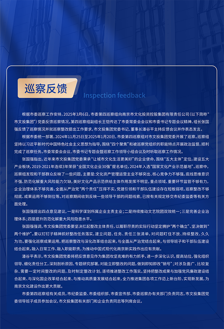 黨建領(lǐng)航南京市文投集團(tuán)領(lǐng)導(dǎo)班子召開2024年度民主生活會暨巡察整改專題民主生活會